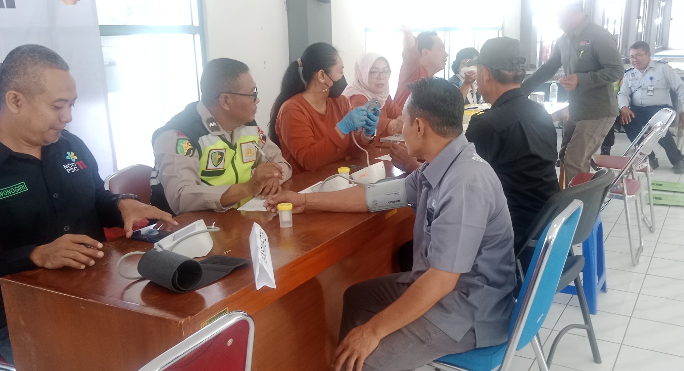 Pemeriksaan kesehatan digelar Polres Wonogiri bersama Dinas Kesehatan ini meliputi pemeriksaan tes urine, pemeriksaan tekanan darah, gula darah, alkohol dan narkoba.
