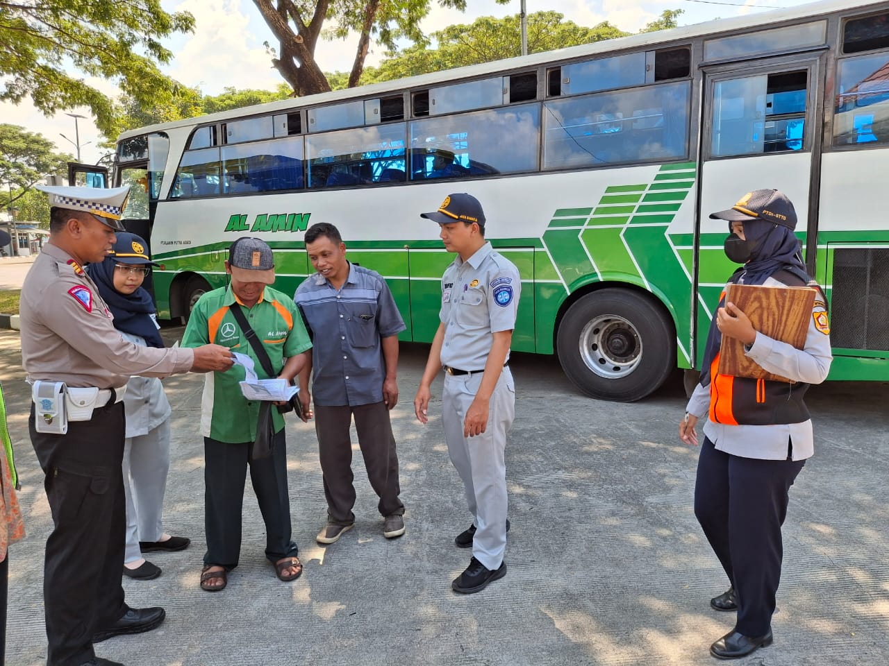 BeritaWonogiri.com [SELOGIRI] – Anggota kepolisian resort (Polres) Wonogiri bersama tim gabungan menggelar ramp check atau pemeriksaan kelaikan kendaraan penumpang di Terminal Giri Adipura, Krisak, Desa Singodutan, Kecamatan Selogiri, Kabupaten Wonogiri, Sabtu, 18 Mei 2024.