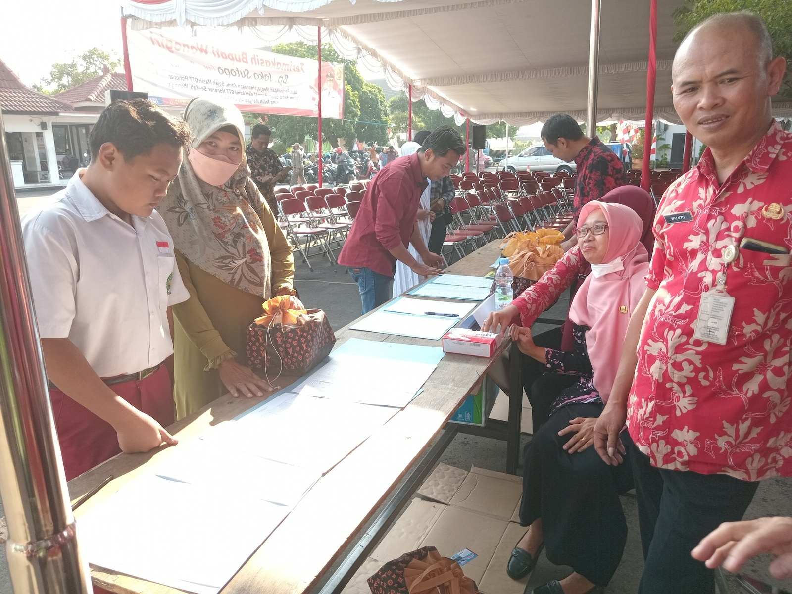 Secara simbolis, Bupati Wonogiri, Joko Sutopo dan sejumlah pejabat Wonogiri menyerahkan seragam itu di pendapa rumah Dinas Bupati Wonogiri, Kamis (31/8/2023). Sebelum penyerahan empat calon penerima maju dan diminta melafalkan Pancasila oleh Bupati.