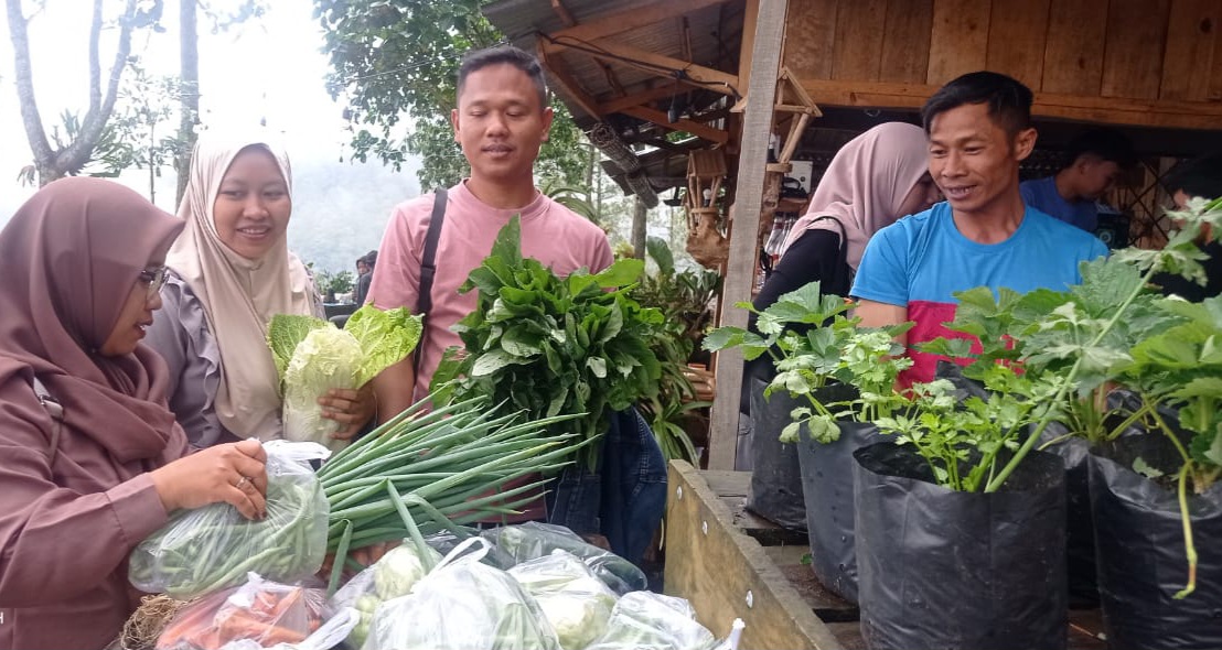 Miklek, salah satu penjual, mengatakan bahwa lapak ini hanya buka setiap Sabtu dan Minggu. “Kami menjual aneka sayuran segar seperti daun preh, wortel, buncis, kacang panjang, dan sawi. Semua hasil dari kebun kami sendiri bersama warga di sekitar kawasan wisata ini,” jelasnya.
