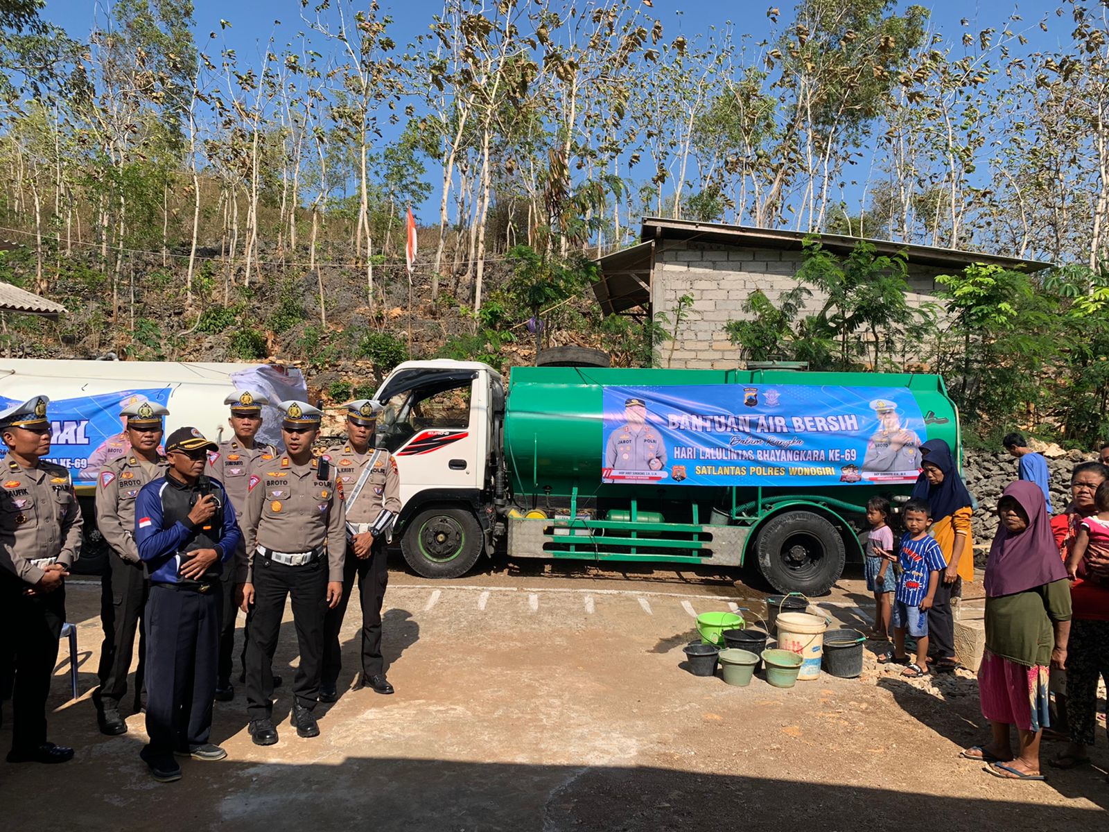BeritaWonogiri.com [PARANGGUPITO] – Kepolisian resort (Polres) Wonogiri membagikan air bersih kepada masyarakat terdampak kekeringan pada musim kemarau menjelang Hari Ulang Tahun (HUT) Lantas ke-69.