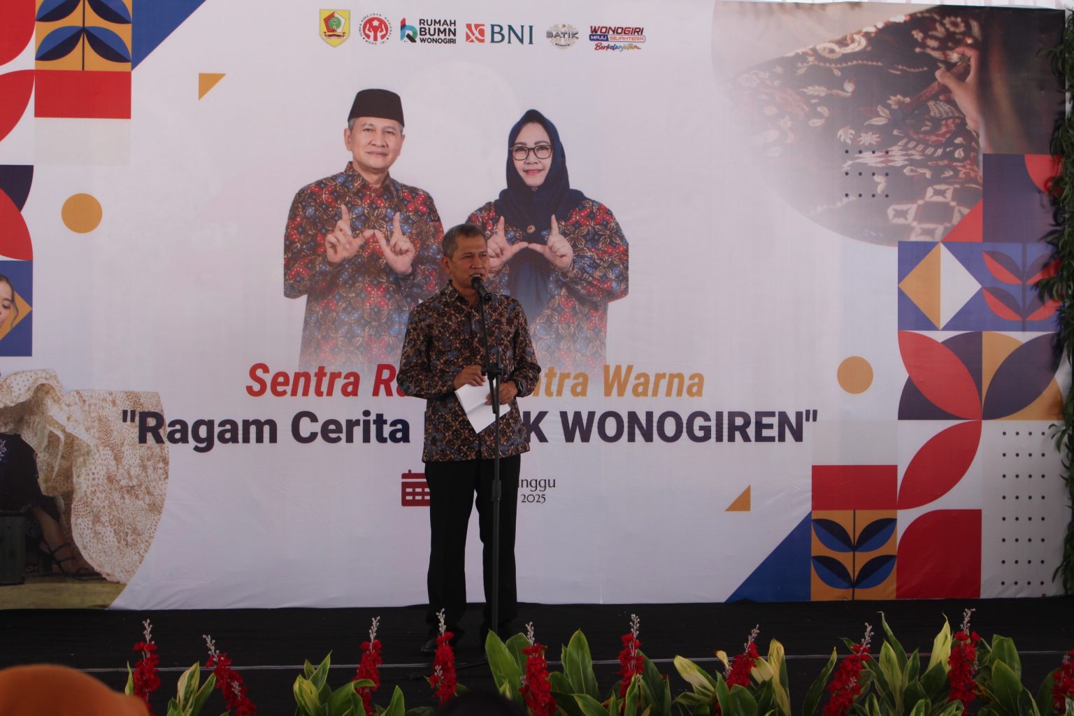 Acara resmi dibuka oleh Bupati Wonogiri, Setyo Sukarno, yang menyampaikan pentingnya ruang promosi bagi pelaku usaha lokal. Dalam sambutannya, ia menekankan bahwa potensi batik di Wonogiri cukup besar baik dari sisi produsen maupun konsumen. “Kami mendorong teman-teman perajin untuk terus berkembang dengan memberikan ruang seluas-luasnya bagi kreativitas,” ujarnya.