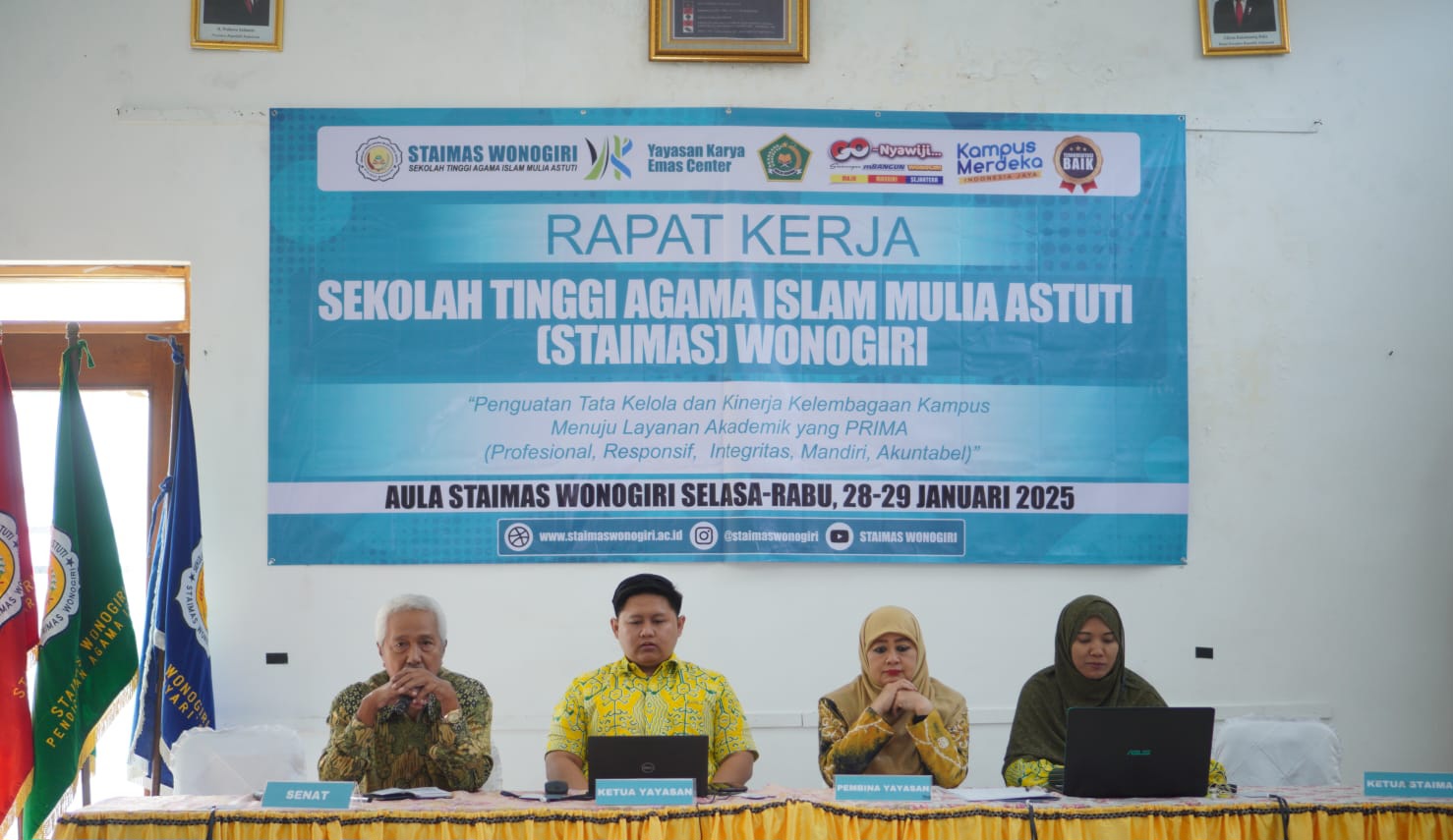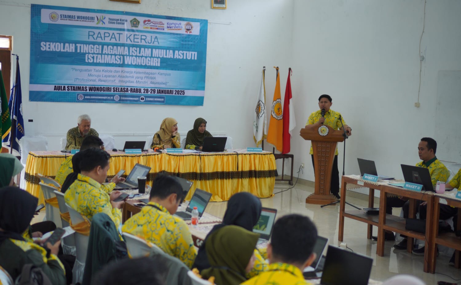 BeritaWonogiri.com [WONOGIRI] – Sekolah Tinggi Agama Islam Mulia Astuti (Staimas) Wonogiri menyelenggarakan Rapat Kerja (Raker) Tahun 2025, Selasa dan Rabu, 28 dan 29 Januari 2025 di aula Kampus Staiman, Kelurahan Wonoboyo, Kecamatan/Kabupaten Wonogiri.