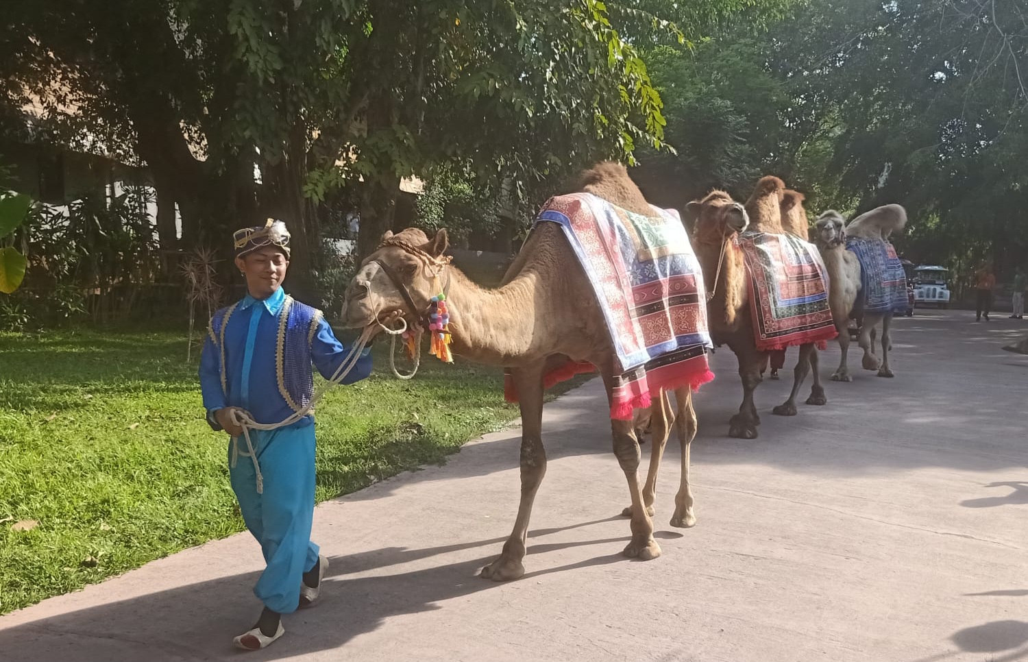 Tiga ekor unta milik Solo Safari, Jurug, Solo, Jateng diarak keliling menyusuri jalan di Taman Solo Safari beberapa waktu lalu. (BeritaWonogiri.com/Iskandar)