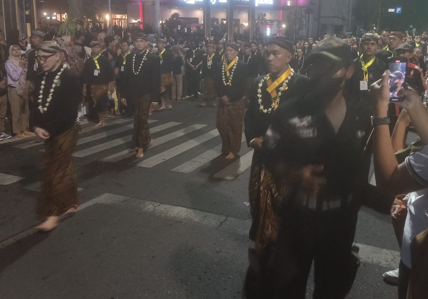 Sekitar pukul 19.40 WIB rombongan kirab pusaka yang keluar dari Pura Mangkunegaran tiba di Perempatan Pasar Pon (Sarpon). Ribuan warga dari Solo Raya dan sekitarnya menyaksikan kirab yang langka karena melintas di Jalan Slamet Riyadi ini.