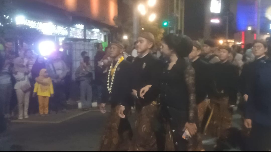 BeritaWonogiri.com [SOLO] – Putra bungsu Presiden Joko Widodo (Jokowi), Kaesang Pangarep dan istrinya, Erina Gudono serta Wakil Wali (Wawali) Kota Solo, Teguh Prakosa mengikuti kirab pusaka Pura Mangkunegaran memperingati 1 Sura yang digelar Minggu Kliwon, 7 Juli 2024 malam. Namun kakak Kaesang yakni Gibaran Rakabuming Raka yang juga Walikota Solo tak tampak.