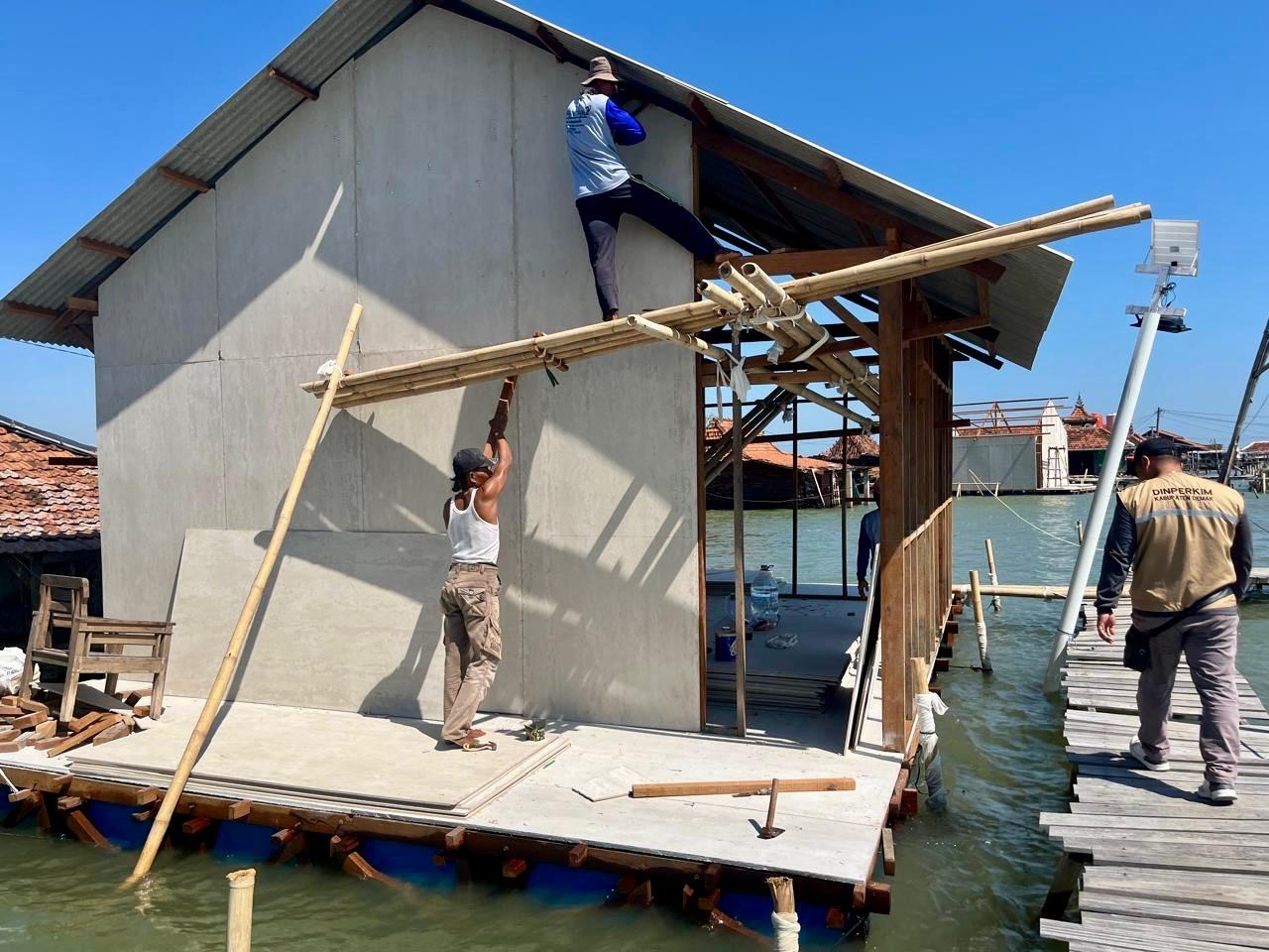 Warga seperti Muslim (50) mengaku lega dengan progres pembangunan. “Lantai dan dinding sudah selesai, tinggal atap dan sekat ruangan,” katanya. Rumah apung ini dinilai lebih nyaman dibanding rumah sebelumnya yang terus terendam air asin.