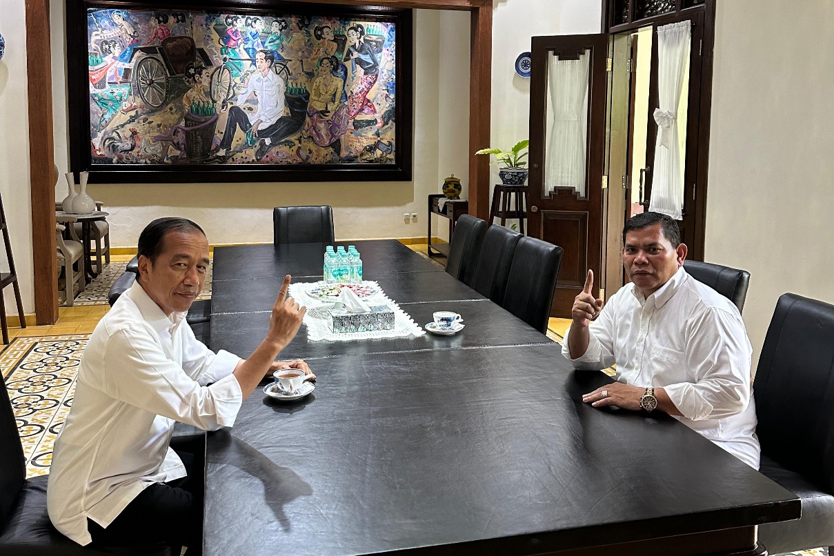 Di kediaman Joko Widodo ini, H Tarso bertemu juga dengan Calon Gubernur (Cagub) Jateng, Achmad Luthfi. Keduanya foto bersama dengan masing-masing menampilkan simbul jari dirinya.