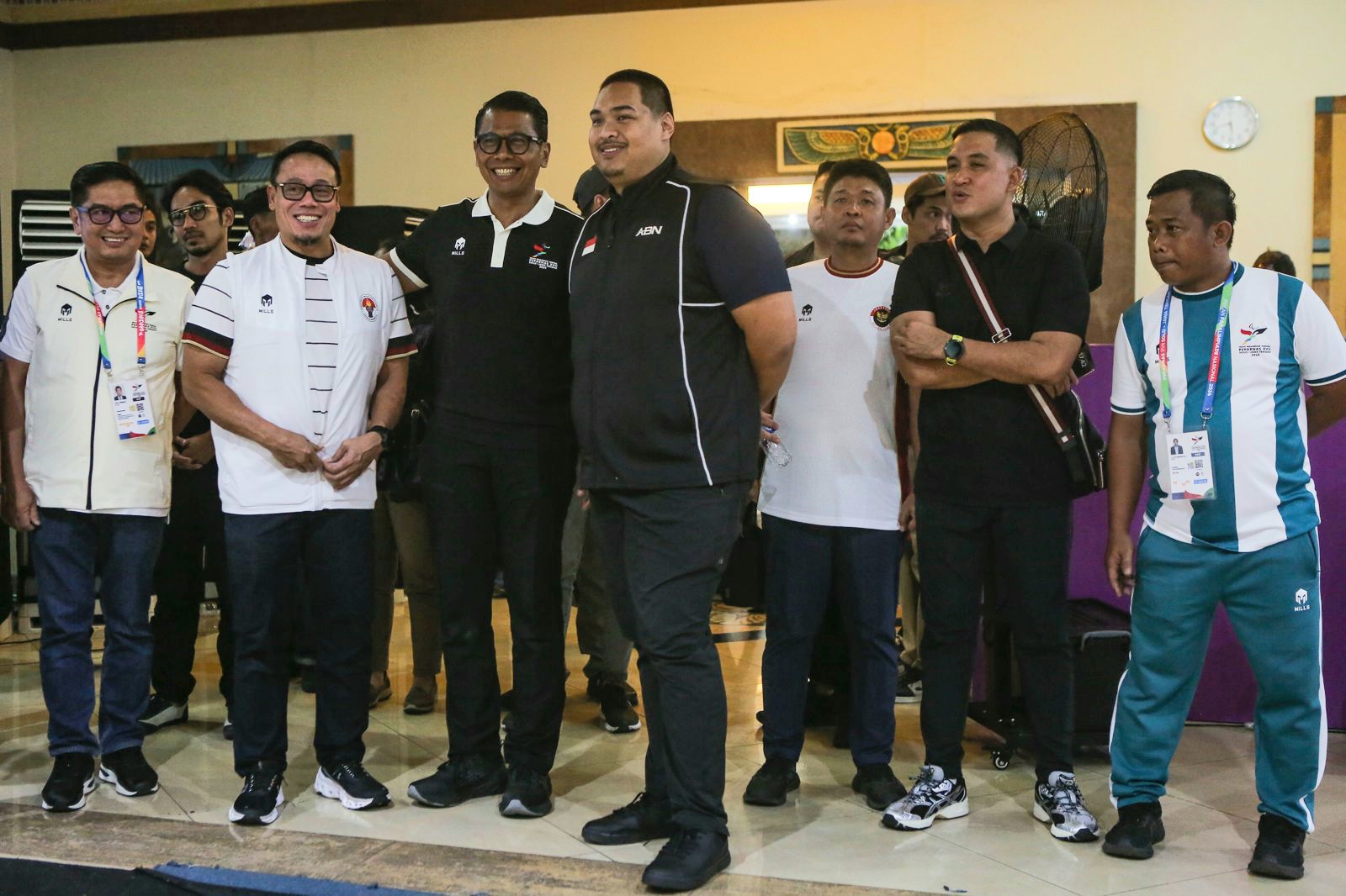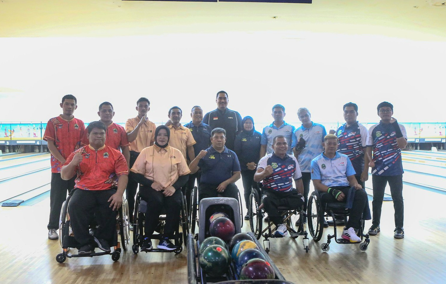 Menpora Dito Ariotedjo (enam dari kiri berdiri di belakang) berfoto bersama beberapa atlet saat meninjau venue tenpin bowling di Bengawan Sport, Solo, Jateng, Sabtu, 12 Oktober 2024. (BeritaWonogiri.com/Ist)