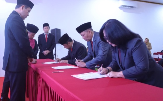 Ke-151 pejabat itu terbagi atas seorang pejabat eselon II A Sekda, lima eselon II B, 27 eselon III, 52 eselon IV, 3 Kepala Puskesmas, 44 Kepala SDN, 10 Kepala SMPN dan seorang Kepala TK Negeri.