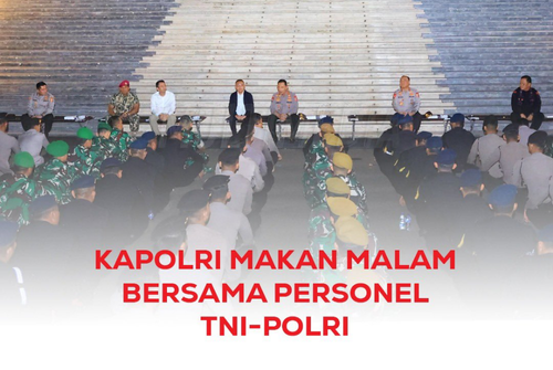 Makan malam bersama tersebut menjadi momentum kebersamaan yang hangat di tengah suasana pengamanan. Kapolri mengajak seluruh aparat untuk selalu menjaga kekompakan, profesionalisme, serta mengedepankan pendekatan humanis dalam setiap tugas di lapangan.