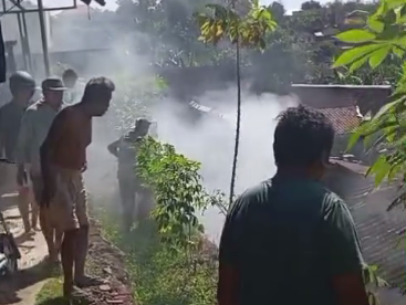 Dua unit mobil Damkar yang diterjunkan ke lokasi langsung melakukan penyemprotan di bagian atap dan api bisa dipadamkan.
