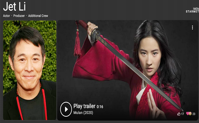 Jet Li yang punya nama asli Li Lian Jie, kerap memerankan tokoh utama dalam film-film laga keras dan cenderung brutal di China dan beberapa negara di Eropa dan Amerika.