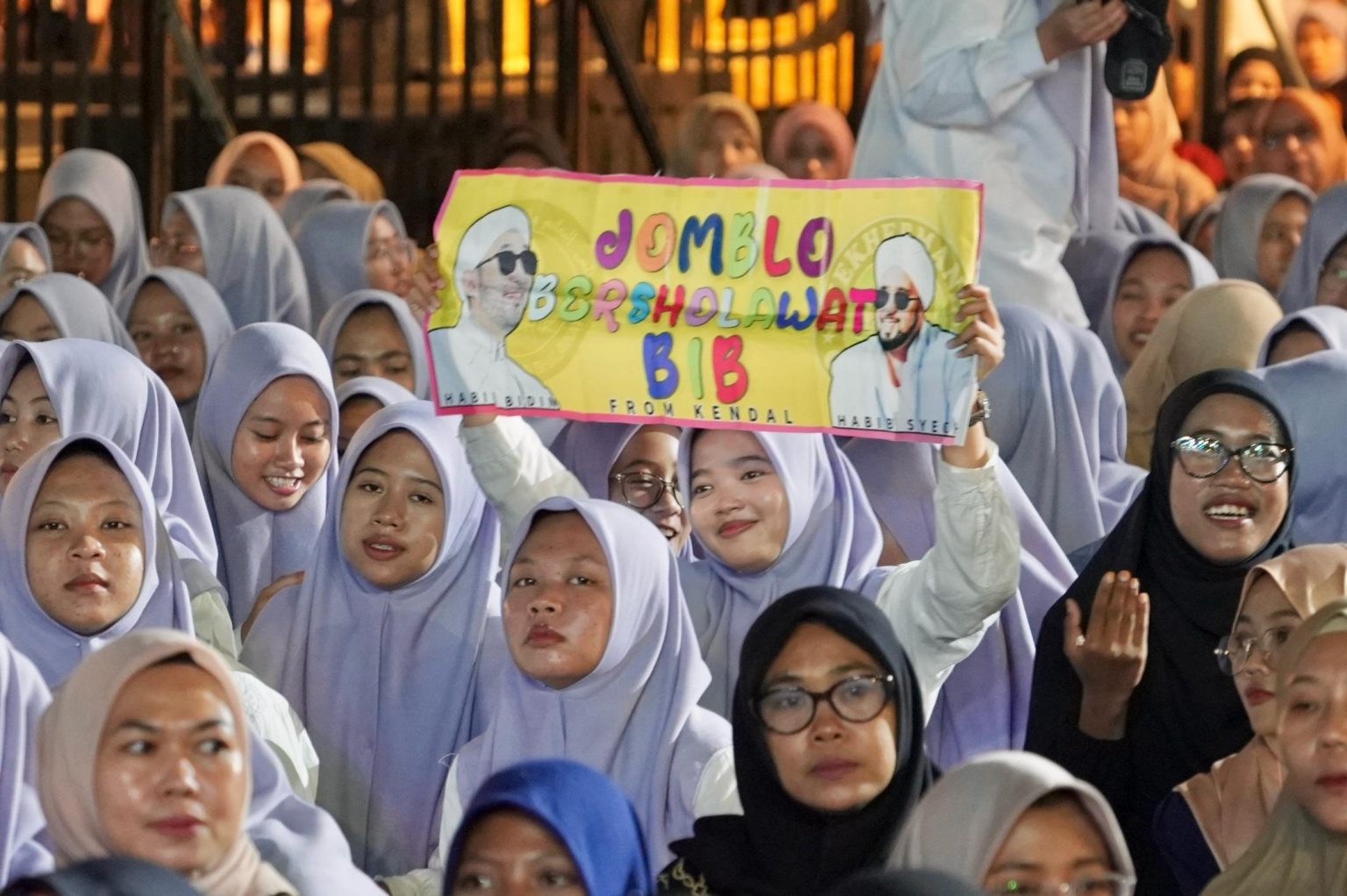 Warga berbagai kelompok usia ikut berdoa dan berselawat dengan khusyuk dan khidmat dari awal hingga puncak acara. Menariknya, di antara peserta sholawat dalam rangka peringatan Hari Lahir Pancasila itu, ada kelompok cewek-cewek cantik membentangkan poster komunitas sebagai Jomblo.