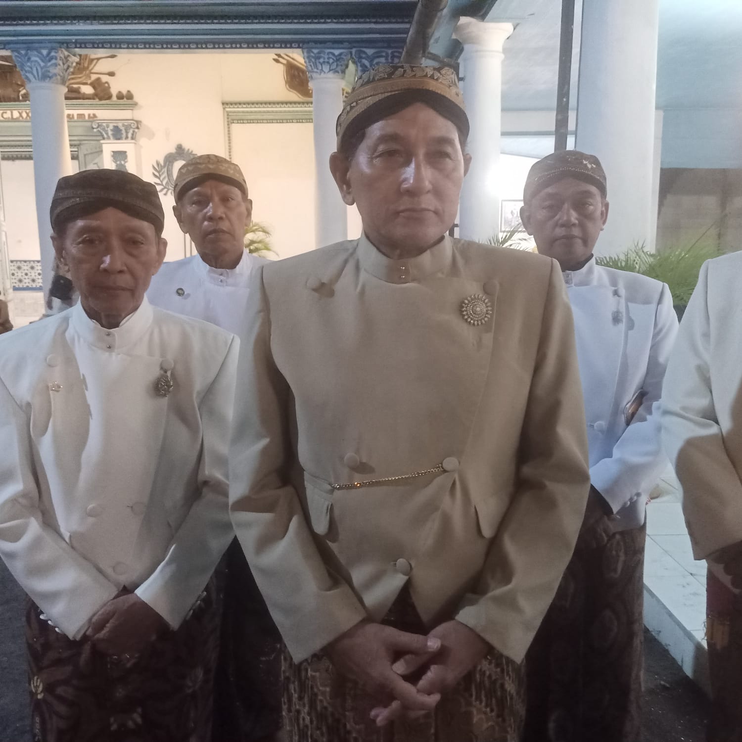 Pengageng Parentah Keraton Surakarta Hadiningrat, Gusti Pangeran Haryo (GPH) Dipo Kusumo (tiga dari kiri) ketika ditemui seusai memberangkatkan rombongan pembawa jodang dan joli berisi beras di Bangsal Smarakata Keraton Surakarta Sabtu, 6 April 2024 malam. (BeritaWonogiri.com/Iskandar)