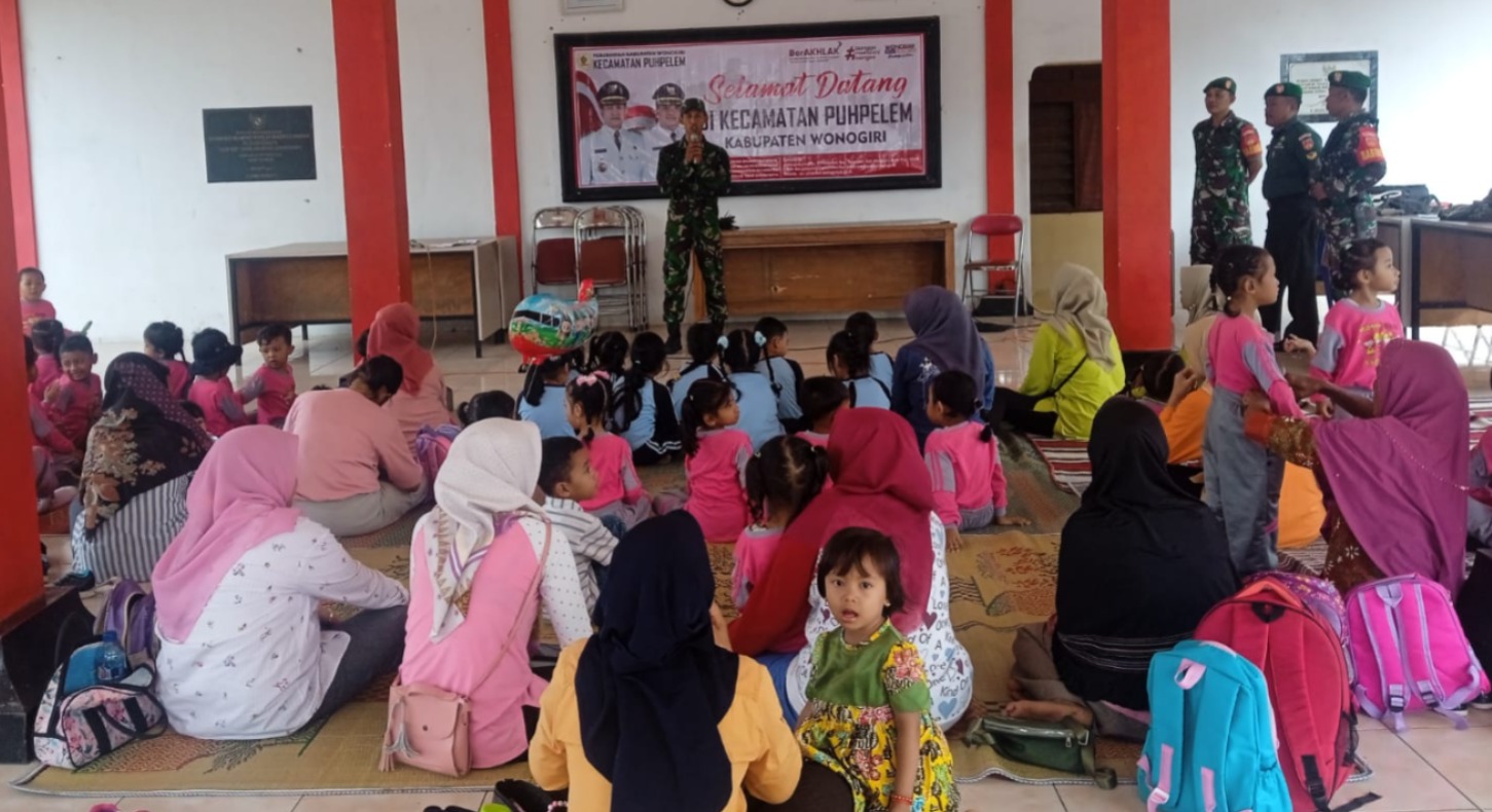 BeritaWonogiri.com (WONOGIRI) – Personil Koramil 24 Kecamatan Puhpelem Kodim 0728/Wonogiri mengadakan pembinaan teritorial anak – anak Kelompok Bermain Himpaudi Harapan Bunda dan Tunas Harapan Desa Puhpelem, Senin 19 Mei 2025.