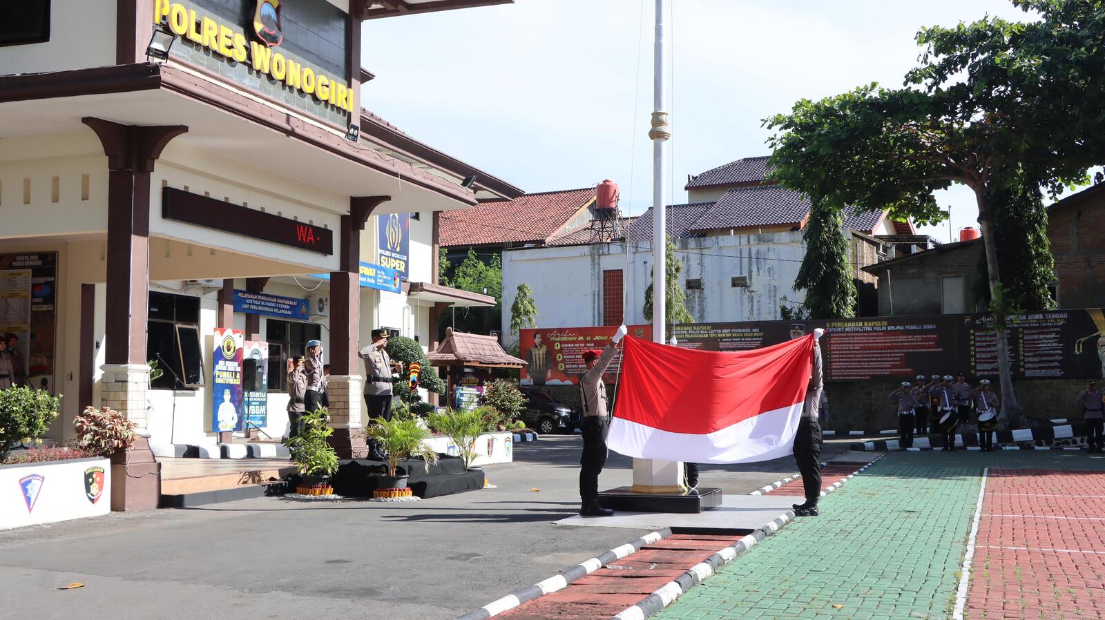 Kapolres Wonogiri, AKBP Andi Muhammad Indra Waspada Amirullah bertindak sebagai Inspektur upacara dan Kanit III Sat Reskrim Polres Wonogiri, Ipda Sigit Purwoko bertindak sebagai komandan upacara.