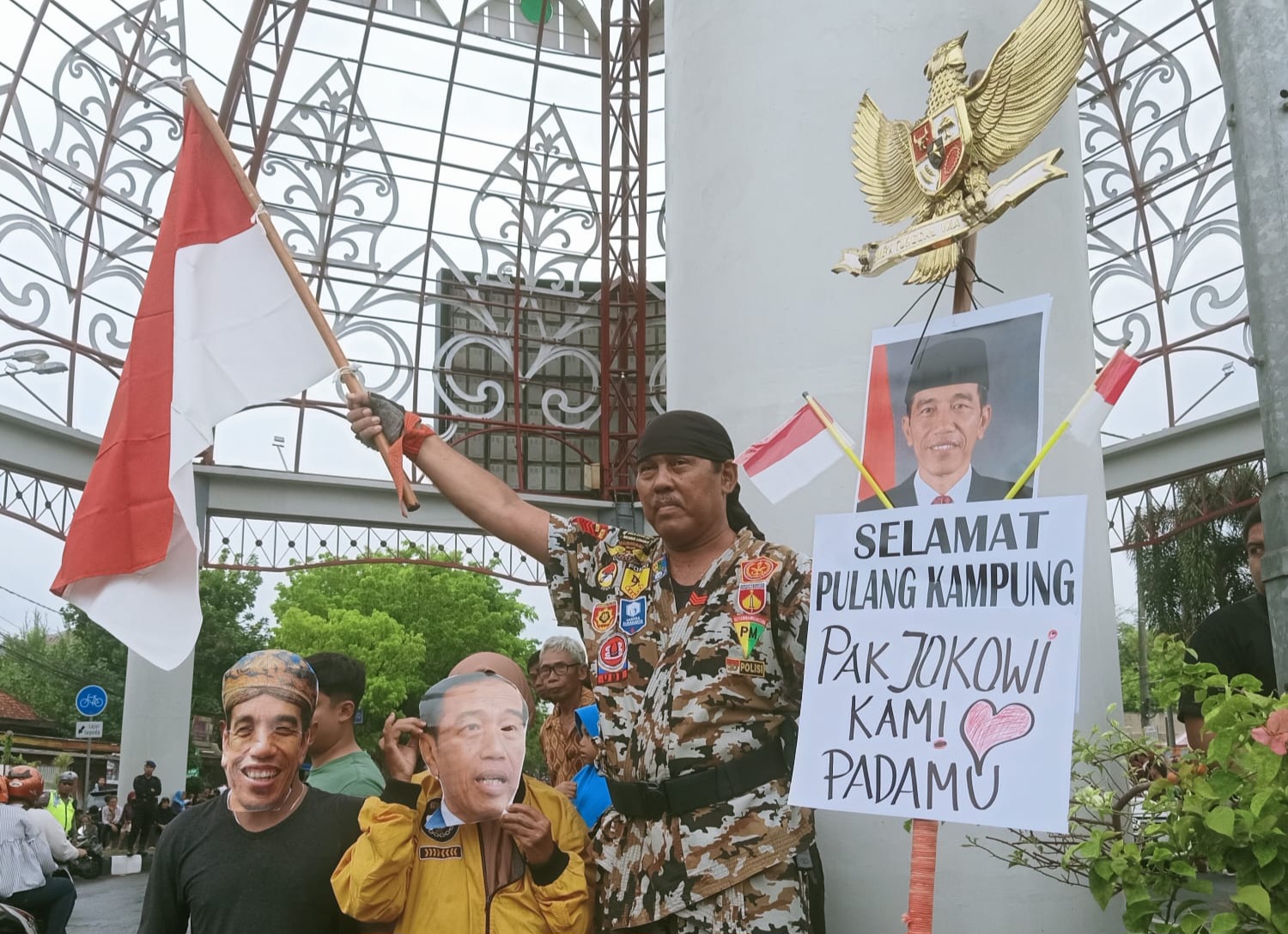 Mereka berdiri di kanan-kiri jalan yang dilalui presiden ketujuh RI, Joko Widodo tanpa putus yang pulang ke Solo dari Jakarta, Minggu, 20 Oktober 2024 malam. Seusai menghadiri serah terima jabatan dengan Presiden 2024, Prabowo Subianto di Jakarta, Jokowi bersama istri Iriana pulang ke kediamannya di Jalan Kutai Utara I, Sumber, Banjarsari, Solo.