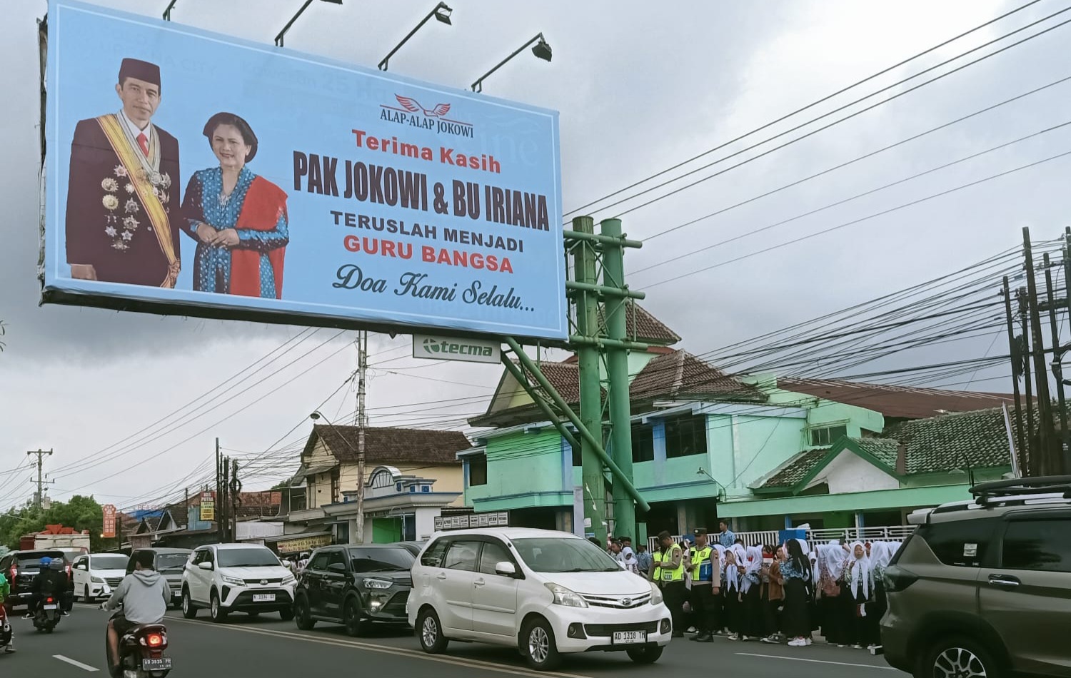 Di sepanjang jalan yang dilalui Jokowi juga banyak terdapat spanduk, poster ucapan terima kasih kepada Jokowi. Tak terkecuali ucapan terima kasih juga terpampang di sejumlah papan iklan di beberapa tempat.