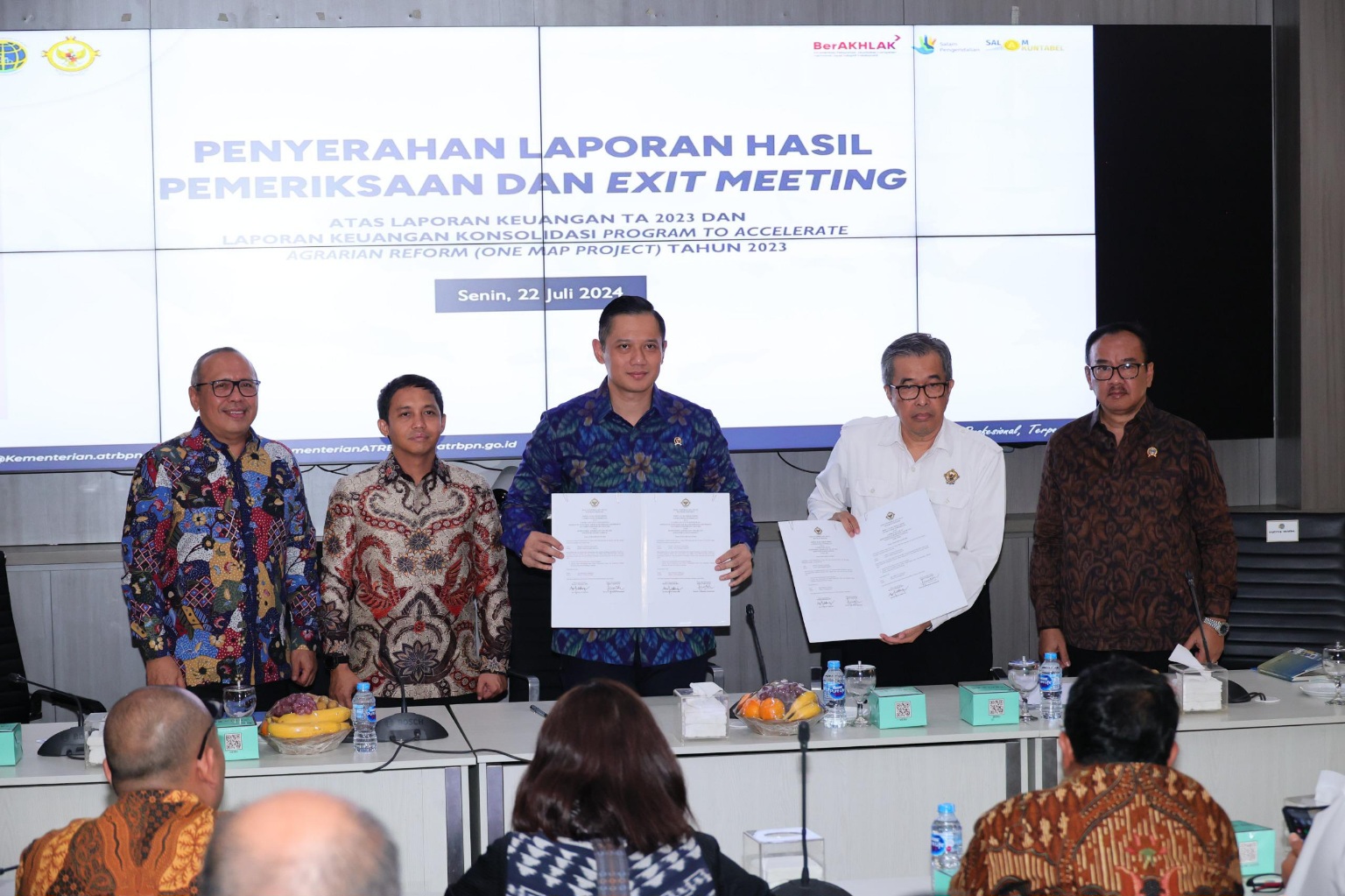 Pernyataan itu ia sampaikan dalam kegiatan Penyerahan Laporan Hasil Pemeriksaan Atas Laporan Keuangan Tahun 2023 dan Exit Meeting Pemeriksaan Atas Laporan Keuangan Konsolidasi Program to Accelerate Agrarian Reform (One Map Project) Tahun 2023, Senin, 22 Juli 2024.