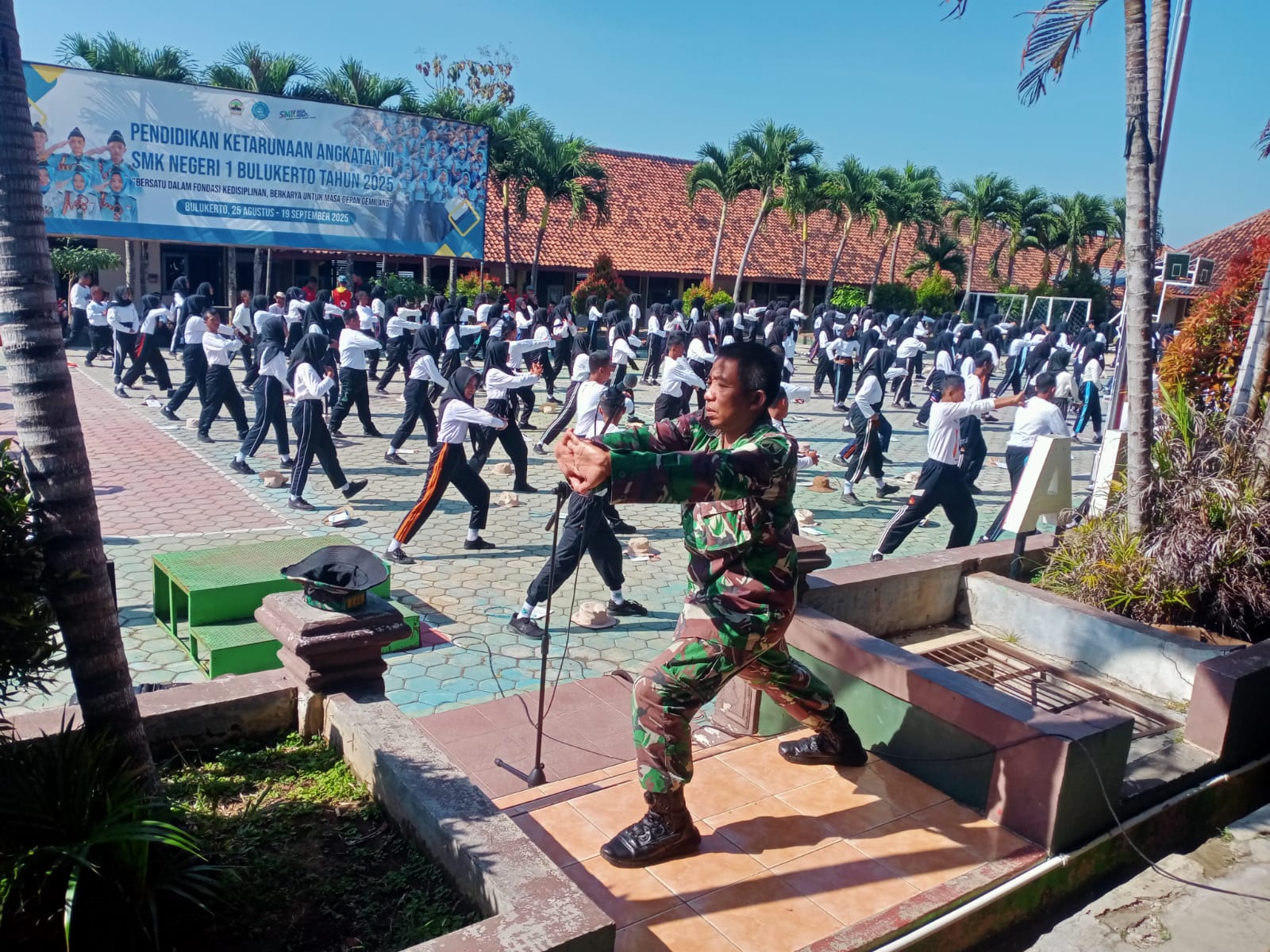 Para siswa mengikuti latihan fisik dengan penuh semangat dan disiplin di lapangan sekolah. (Foto: pendim 0728/wng)