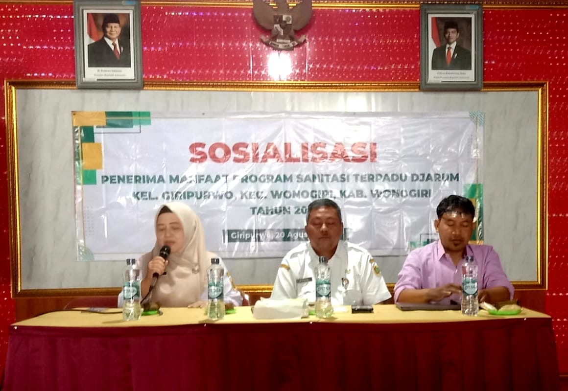 BeritaWonogiri.com [WONOGIRI] – Sosialisasi program sanitasi terpadu dilakukan di Aula Kelurahan Giripurwo, Kecamatan/Kabupaten Wonogiri, Rabu, 20 Agustus 2025. Sosialisasi dalam rangka meningkatkan kesadaran masyarakat tentang pentingnya sanitasi yang baik dan dampaknya terhadap kesehatan dan lingkungan.