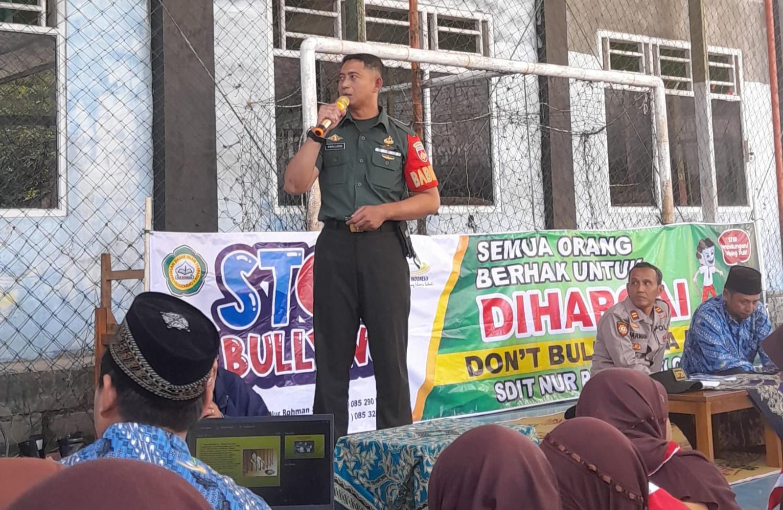 BeritaWonogiri.com [SLOGOHIMO] – Babinsa Koramil 22/Slogohimo Kodim 0728/Wonogiri menjadi narasumber pada kegiatan parenting bertema Sekolah Anti Bullying di SDIT Nur Rohman Kecamatan Slogohimo, Sabtu, 23 Maret 2024. Kegiaran itu sebagai upaya untuk mencegah terjadinya perundungan atau yang lebih dikenal dengan bullying di lingkungan pelajar di sekolah.