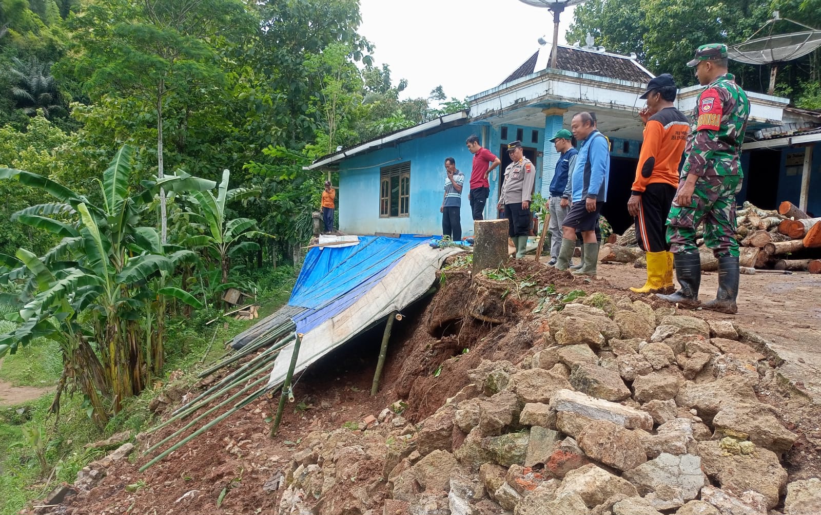 Talud Setinggi 6 Meter Longsor, Rumah Warga Terancam, Anggota Polsek Batuwarno Turun Beraksi