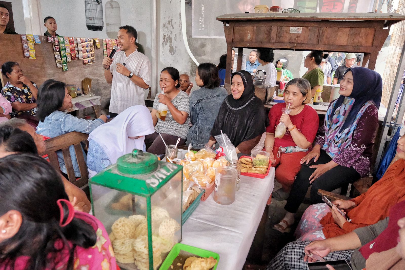 Respati mempersilahkan Ibu-ibu untuk jajan makanan maupun minuman di angkringan milik Sulasmi, 49. Sulasmi mengungkapkan, dirinya kesulitan membeli kipas angin untuk angkringannya.