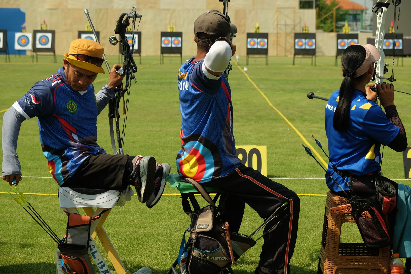 Para peserta juga sudah berkesempatan menjajal arena di Lapangan Kottabarat untuk melatih posisi, melakukan penjangkaran, membidik, hingga melepaskan anak panah, guna mematangkan persiapan jelang pertandingan dimulai.